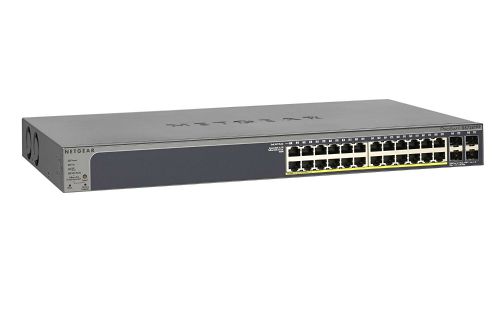 The new 24-port and 48-port NETGEAR Smart Managed Pro Switches support dense deployments of these modern high-power PoE+ devices. They offer powerful Layer 2 and Lite Layer 3 (static routing) features for IPv4 and IPv6 with enhanced performance and a focus on usability within SMB environments. All are equipped with 4 SFP Ports for fiber uplinks.